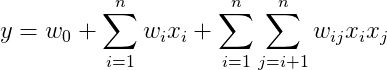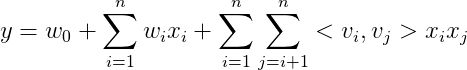 同樣是線性公式,和 LR 的唯一區別,就在於後面的二次項,該二次項表示各個特徵交叉相乘,即相當於我們在機器學習中的組合特徵。
