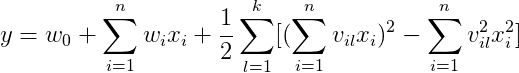 這裏不着重描述 FM 是什麼,FM 由如下公式表示(只討論二階組合的情況)