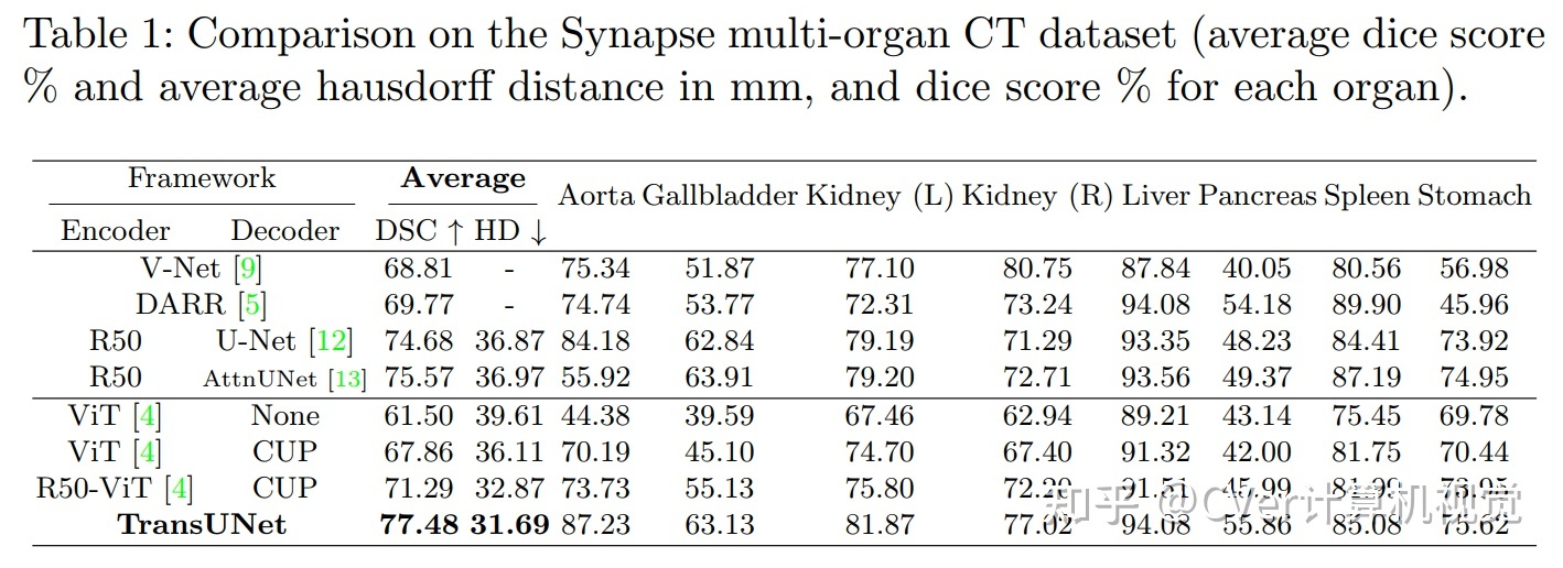 TransUNet在各種醫療應用(包括多器官分割和心臟分割)上均比各種競爭方法具有更高的性能。